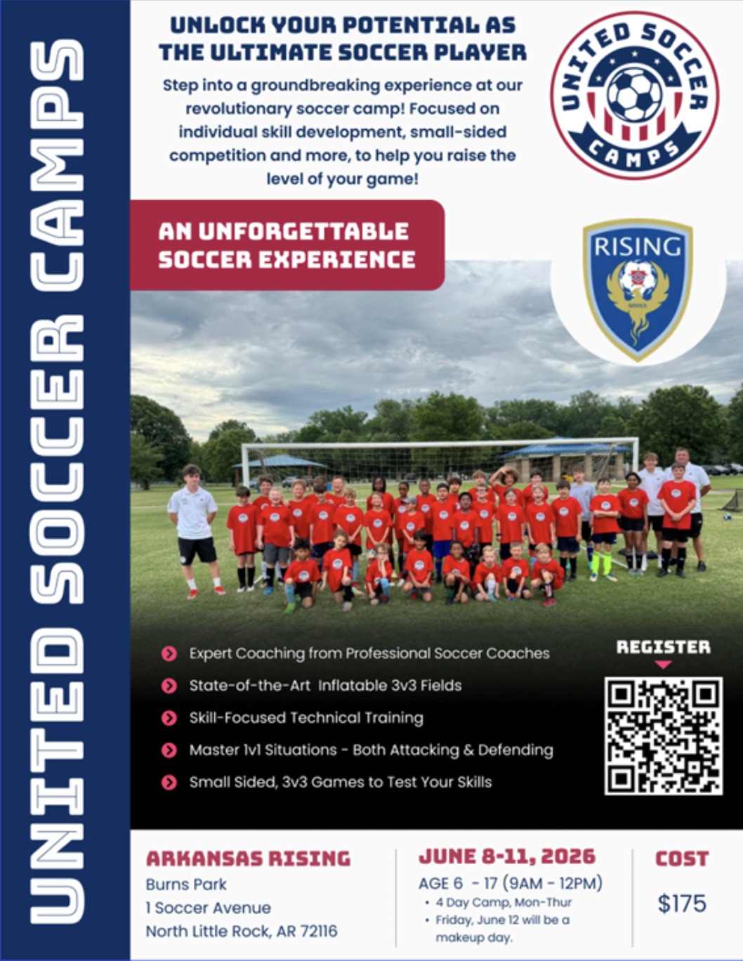 Arkansas Rising is partnering with Everton FC Soccer Schools to host a summer camp. Learn how to train and play like the best!